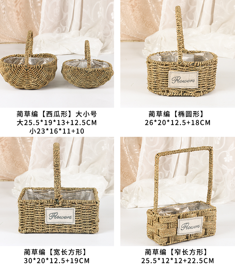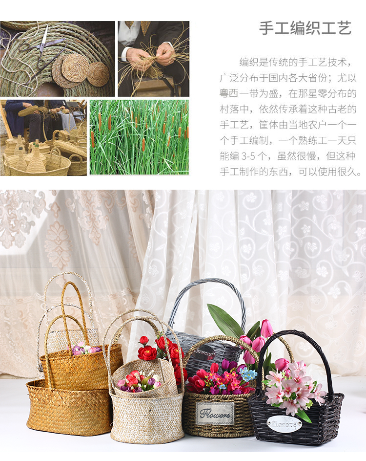 Hand-Held Flower Basket Rattan Plaited Grass Plaited Willow Plaited Hand-Woven Flower Arrangement Small Roses Fresh Dried Flowers Flower Child Wedding Wedding